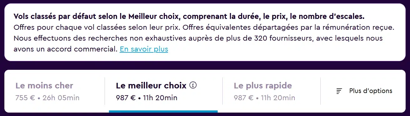 Astuce pratique : N’hésitez pas à jeter un œil à cette fonctionnalité pour chaque itinéraire puisque ce qui est vrai pour l’un ne l’est pas forcément pour un autre. Toute ces donnée peuvent changer selon la destination voir même la période.